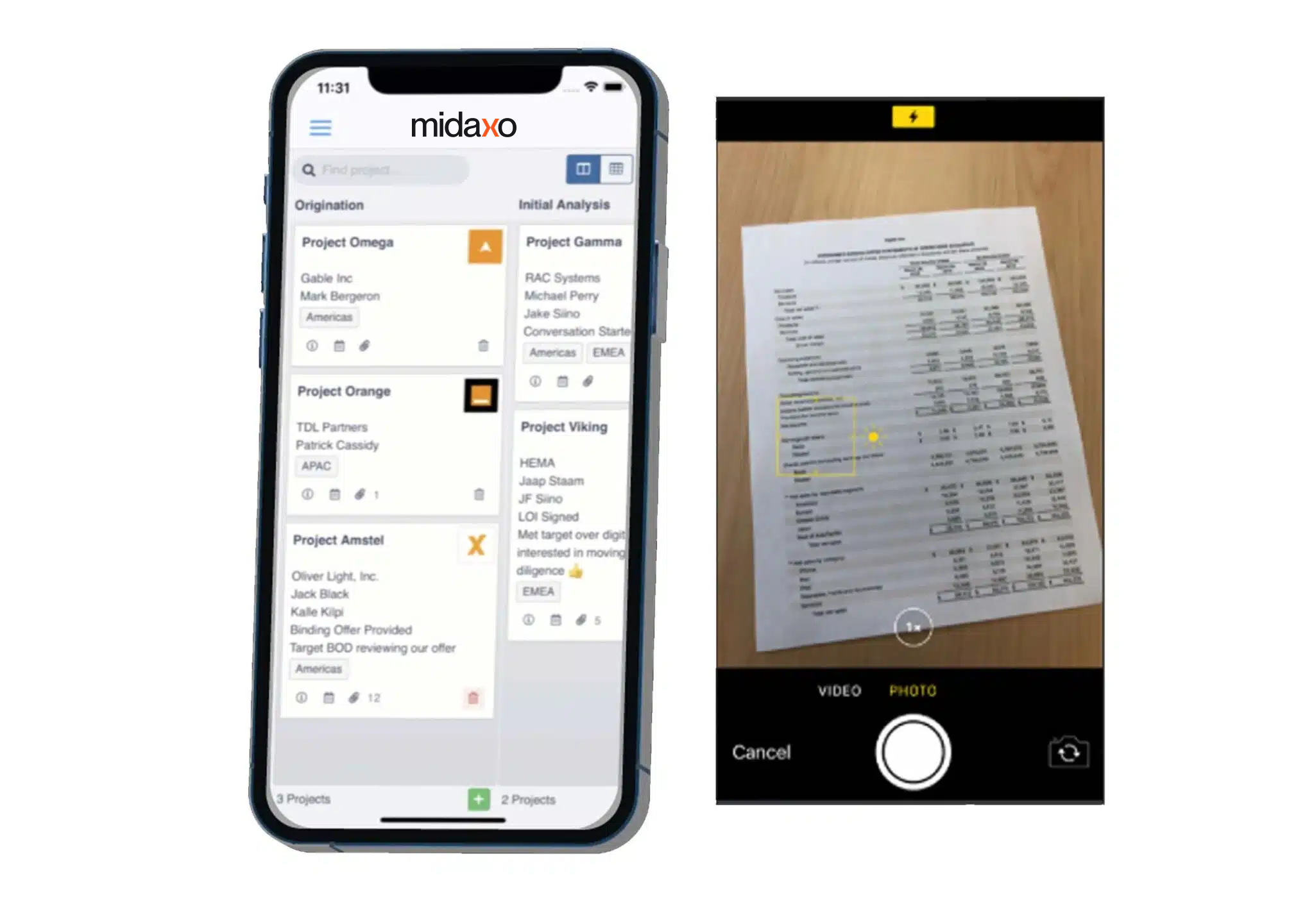 Once downloaded, simply log into your Midaxo account to access your projects, contacts, deal details, and insights instantly.