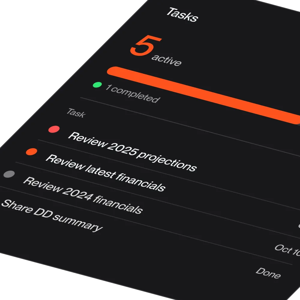 Midaxo helps teams translate strategy into structure, from defining acquisition themes and target profiles to tracking strategic fit across the pipeline. Strategy isn’t a static document; it’s embedded into how deals are identified, evaluated, and prioritized.